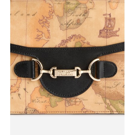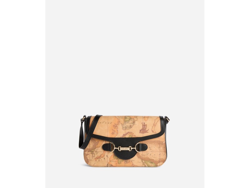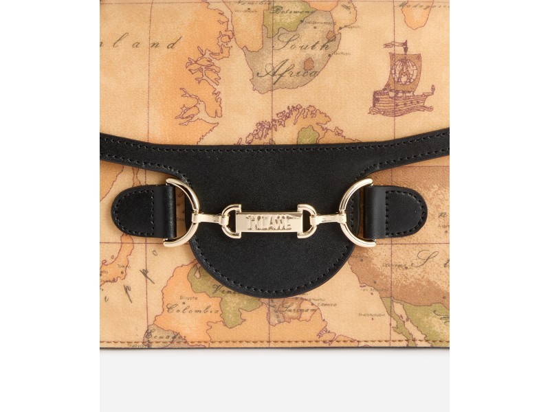 Tracolla in tessuto Geo Classic e pelle granata fine