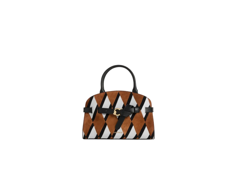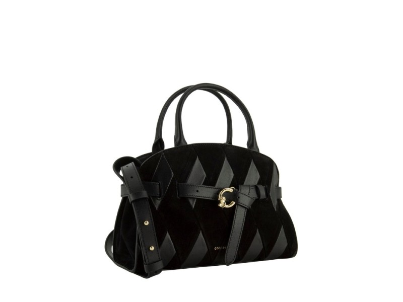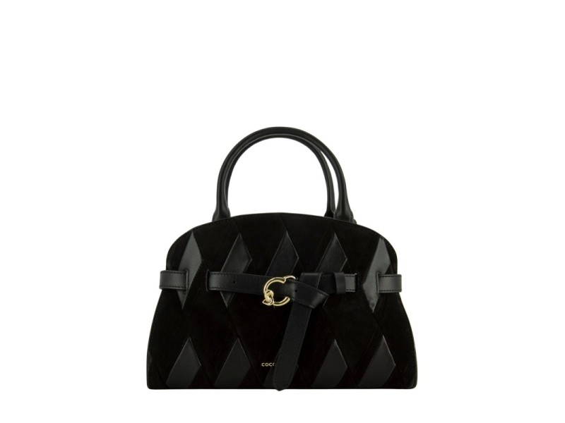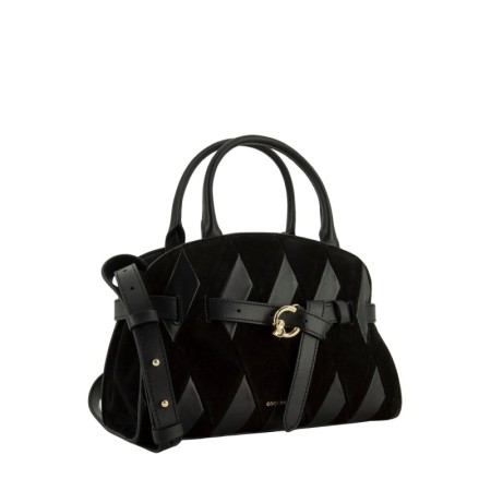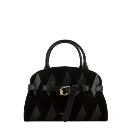 Patchwork con strisce di pelle liscia e camoscio