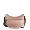 L'iconica Luna Bag Small di Borbonese é una "hobo" realizzata in nylon jet op con dettagli di pelle e nastro di nylon logato all around. La tracolla, regolabile, é in nastro di nylon logato con fibbia autobloccante. La chiusura principale e quella della tasca esterna sono garantite da una zip con tiralampo a forma di vite stilizzata, simbolo del brand. L'interno, foderato in tessuto jacquard, ha tre tasche di cui una con zip. Le metallerie sono in galvanica oro chiaro.