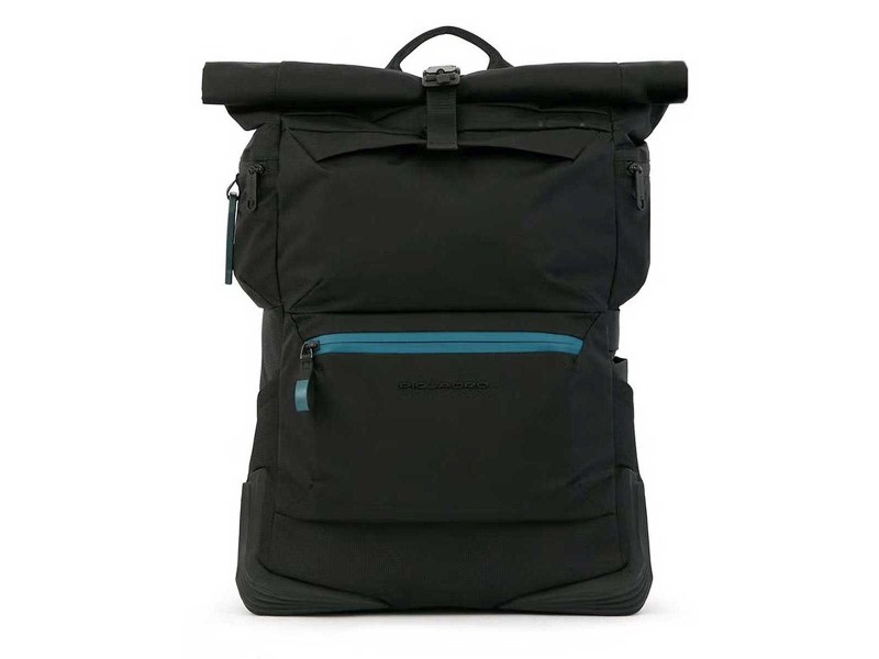 Zaino roll-top per computer e iPad®Pro12,9″ in tessuto riciclato con cinghia pettorale, protezioni antiurto e antipioggia della collezione Corner 2.0. In questa rivisitazione dell’iconica linea Corner di Piquadro, il mondo degli accessori si ispira a quello dell’abbigliamento con tessuti leggeri e morbidi, dalle dimensioni oversize e realizzati in materiali riciclati e di origine bio. Perfetti sia per l’utilizzo nel contesto urbano che outdoor, sono dotati di tutti i supporti tecnologici per la tua mobilità. I materiali riciclati con i quali la linea è realizzata ne fanno la scelta ideale per chi mette il rispetto dell’ambiente al primo posto.